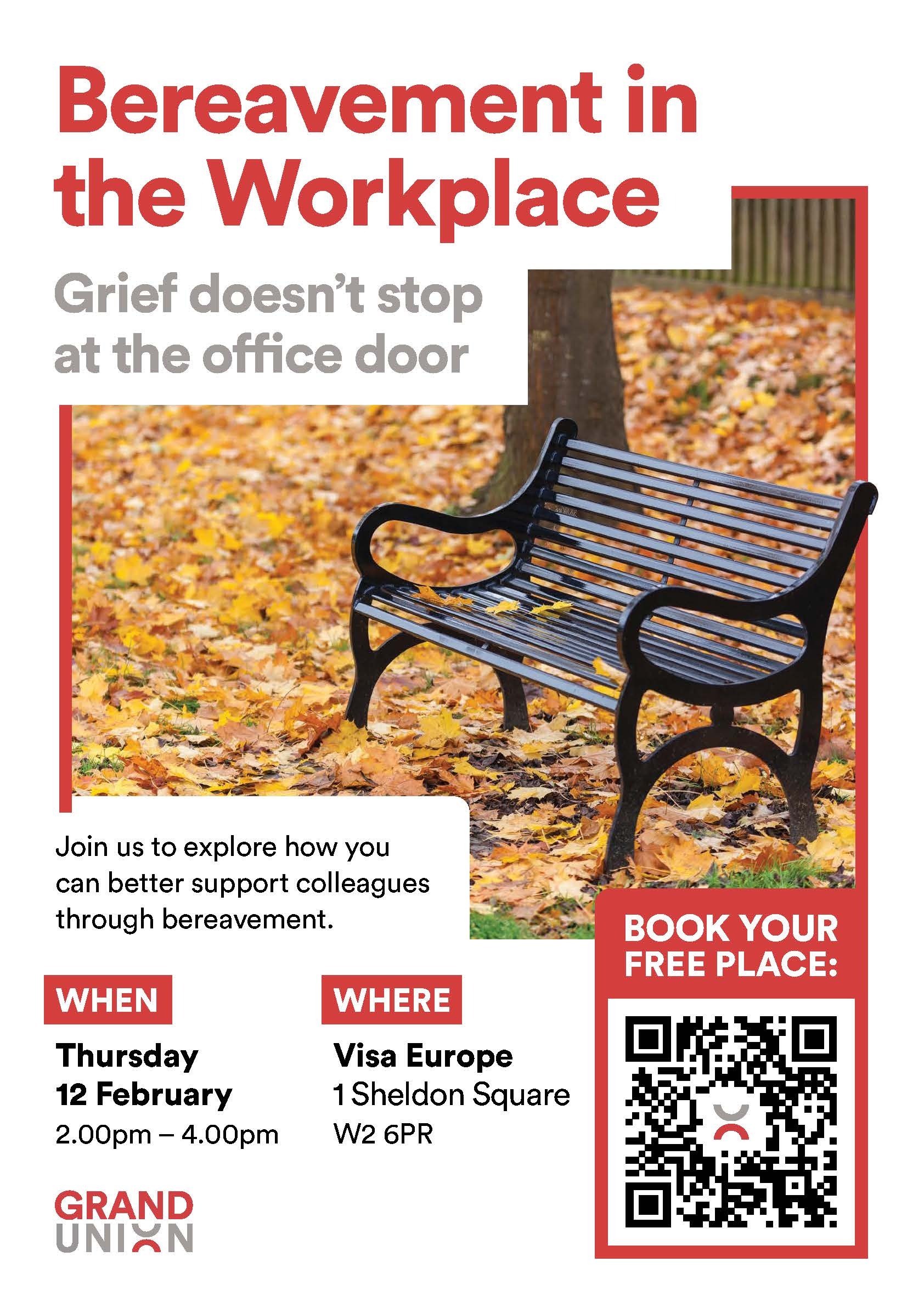 Download our event poster to pin up in your office or share digitally with your colleagues. Bereavement in the Workplace poster.pdf / Bereavement in the Workplace poster.jpg