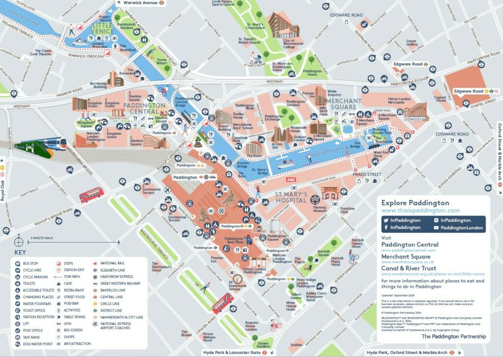 Our bespoke map is refreshed in September 2024 to coincide with the introduction of step-free access at Paddington. The online version of the map receives over 1,000 web views per month, to explore the area and find places to visit, socialise, relax and eat out.