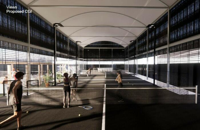 Subject to planning, there will be four courts, two covered and two open, alongside a range of food and drink options, padel shop, accessible toilets and viewing zones.