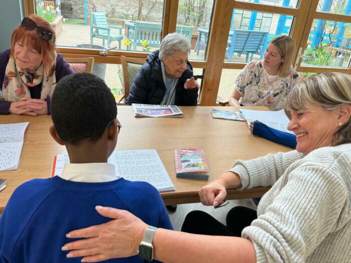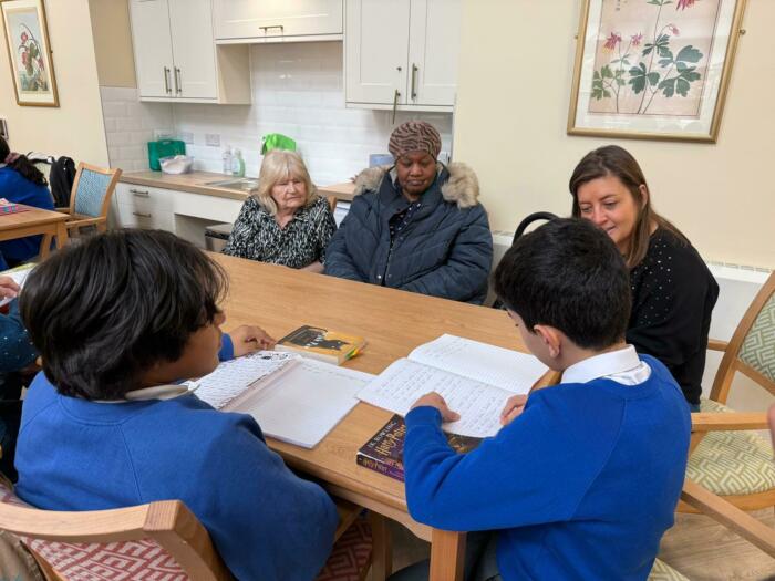 The intergenerational theme continued into Friday, when nine pupils from King Solomon Younger Years Site visited Penfold Court, a residential care home and community hub for older people in Church Street. With the support of volunteers from pharmaceutical firm Taekda, the children spent the morning reading to Penfold residents and reminiscing about treasured childhood books. The room buzzed with conversation, laughter and enchanted faces; as everyone talked excitedly. The lucky residents were treated to a delicious three-course lunch prepared and cooked by Merchant Square, where conversations continued to focus on favourite books, authors and poems.